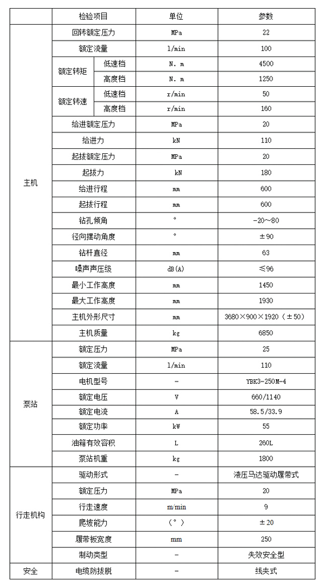 ZDY4500LPS煤礦用履帶式全液壓坑道鉆機(jī)參數(shù)表
