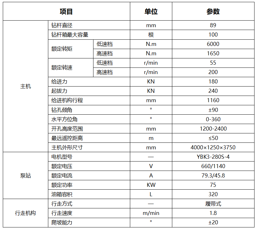 2.國內(nèi)首創(chuàng)全方位自動鉆機,鉆機傾角、方位角、水平開孔高度可自動調(diào)節(jié),調(diào)節(jié)范圍大、操作方便安全。